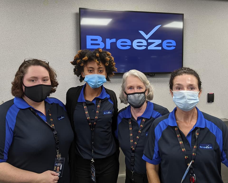 From left, Junior League of Huntsville; Breeze Airways staff.